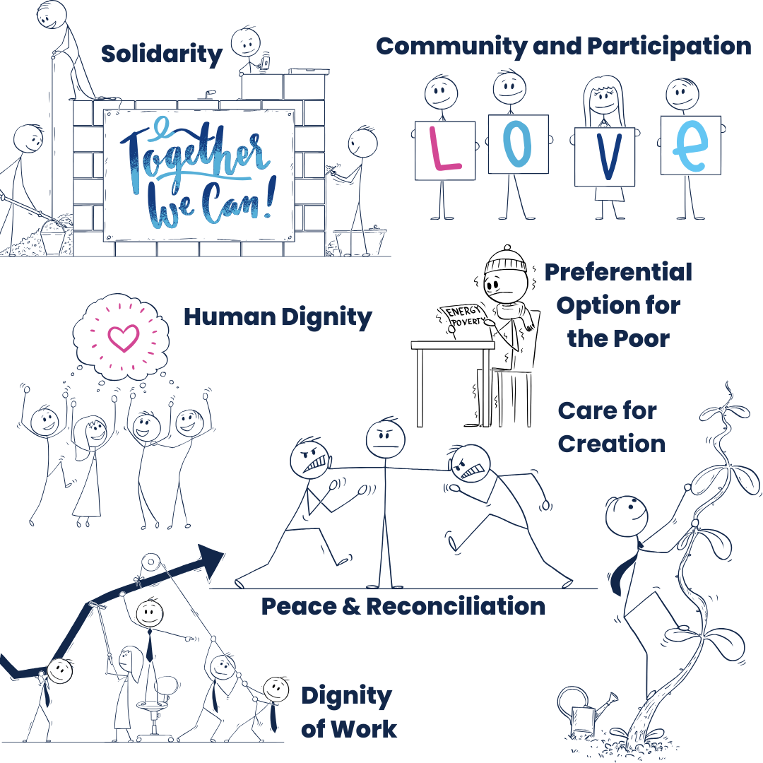 In essence, Catholic Social Teaching is the application of Jesus’ Way to society. At its core is Jesus’ command to ‘love your neighbour as yourself’. Expressed more formally, Catholic Social Teaching is a body of doctrine developed by the Catholic Church dealing with social justice, poverty and wealth. The basis of the doctrine was laid out in Pope Leo XIII’s 1891 encyclical letter Rerum Novarum, with principles rooted in the Gospel.